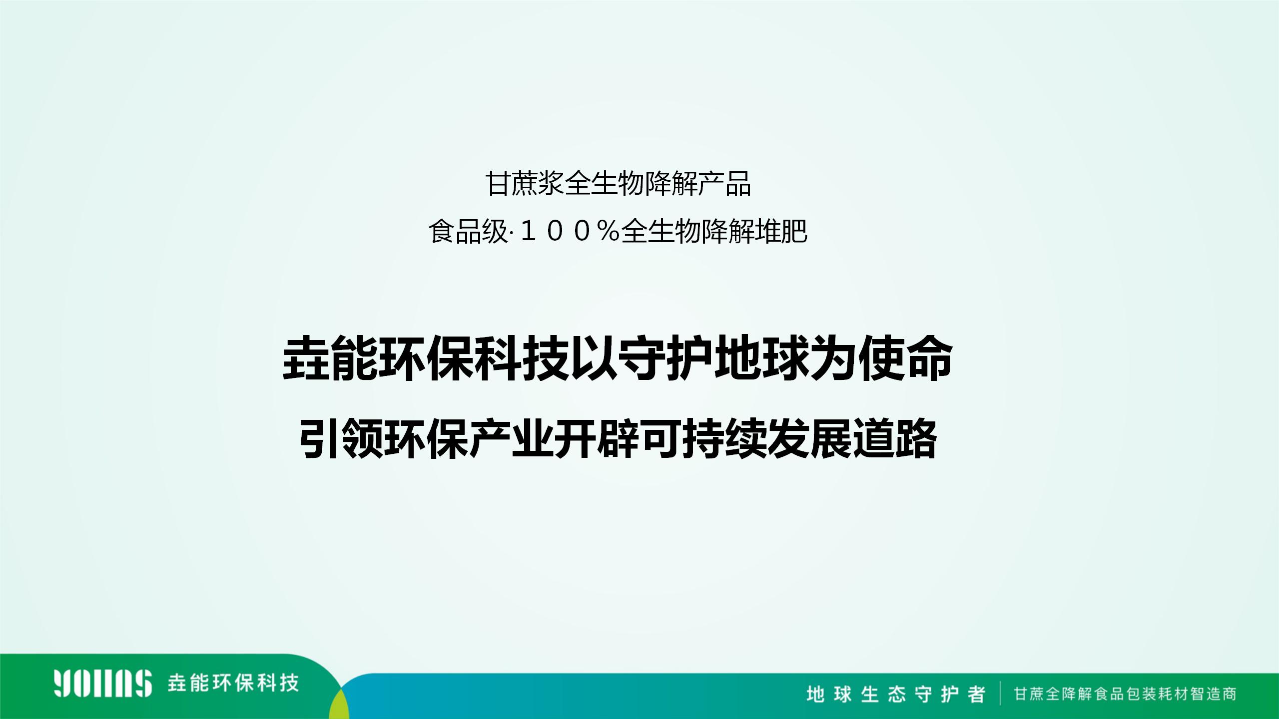 目前垚能環保的生物全降解餐飲具產品線推出以甘蔗漿、秸稈漿、PLA、PBAT等為原料,包括但不限于一次性全降解碗碟、杯具、托盤、打包盒、吸管、垃圾袋、快遞袋等,以及部分醫療耗才的包裝等產品,提供一站式產品定制,可滿足餐飲包裝系統性定制。